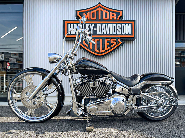 クロームスタイルにフルカスタマイズされたブレイクアウトです。フロントホイールは26インチを装着し、5度レイクのトリプルツリーでインパクトのあるフロントエンドになっています。