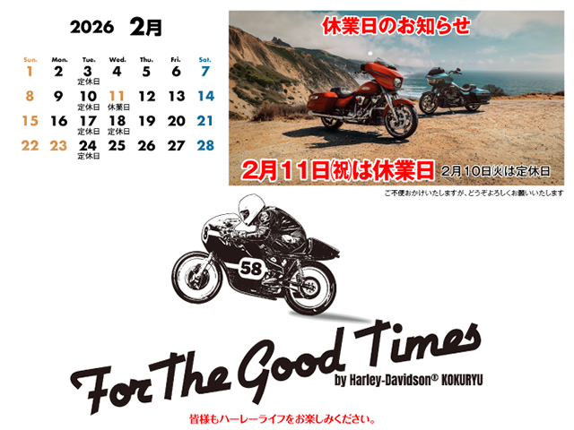 2026.01.25 2026年2月の営業案内更新いたしました。